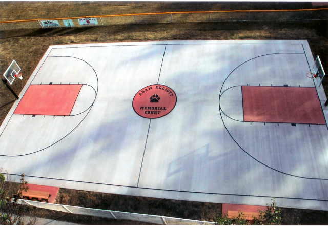 When Mr. Elliott was done speaking, the family unveiled two benches. One inscribed with Adam's Senior quote: "The will to win means nothing without the will to prepare." The other bench says Adam Elliott Memorial Court with a plaque attached. The plaque has Adam's picture on it, and the inscription: "This court is dedicated to the memory of Adam Elliott, a young man who personified true passion, which was displayed through his determination, dedication, and faith in God. On the court, as in every day life, Adam's drive to play his best was an example for others. Adam possessed an immeasurable dedication to his family and country, the town and village of Portville, and to the people so much a part of his life. May the memories of Adam inspire you."